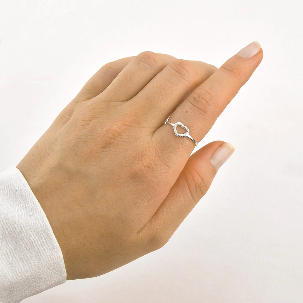 Anel Coração Vazado de Prata 925, com a espessura de 1mm, tem um coração vazado com detalhes no centro da peça, além de ser feito com um material de excelente qualidade de durabilidade.