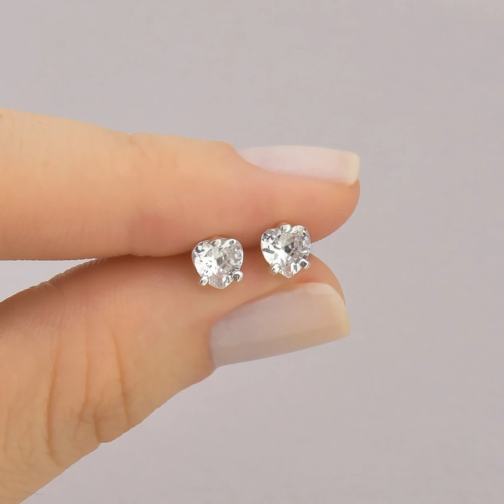Brinco Ponto de luz Coração de Prata 925, vem com um par de peças lindas e com acabamento perfeito em formato de coração de pedra de cor cristal preso por 3 garras, apresenta um pino, a espessura de 2 milimetros com um tamanho de 5 milimetros, vem com o fecho de tarracha, além de ser feito com um material de excelente qualidade e durabilidade.